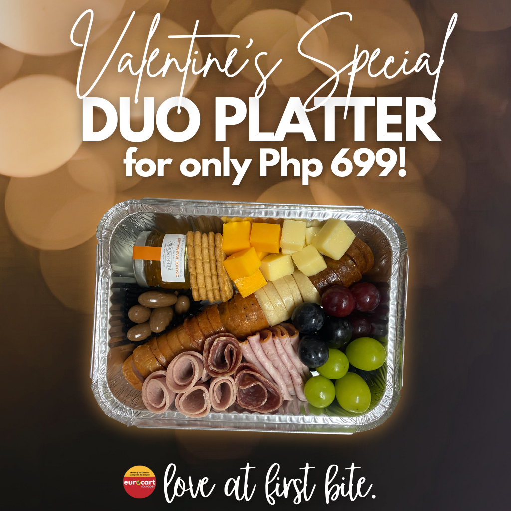 The Special Duo ready-to-eat meat platter served in a 6.5 x 8.5-inch tray and securely packed in a white box with customizable colored ribbons.